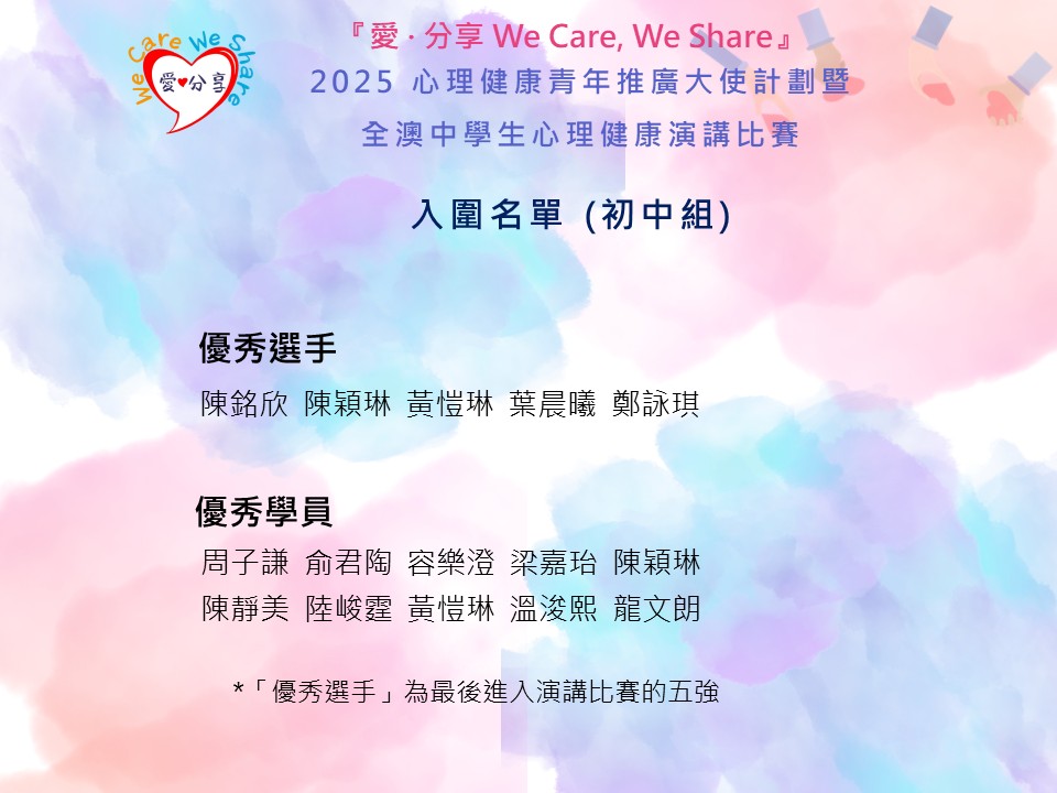 2025 愛‧分享 We Care,We Share 心理健康青年推廣大使計劃